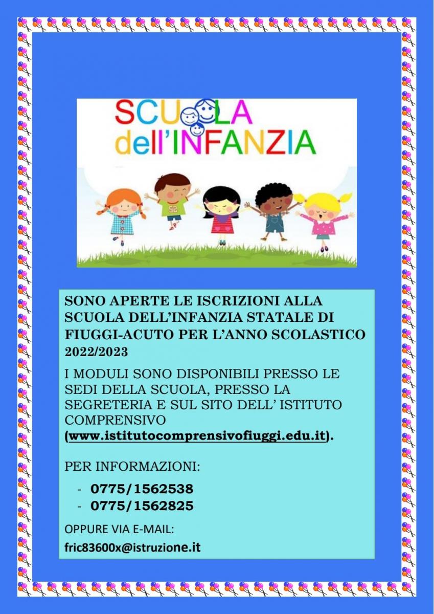 Le attività didattiche della Scuola dell'Infanzia di Fiuggi e Acuto non potranno iniziare il giorno 13 settembre; comunicheremo quando possibile la data di avvio di dette attività.