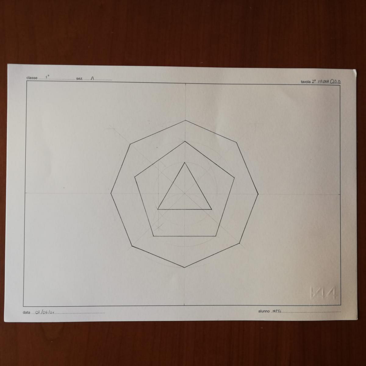 Oggetto delle tre prove è la costruzione di più poligoni regolari dato il lato e/o inscritti in una circonferenza.